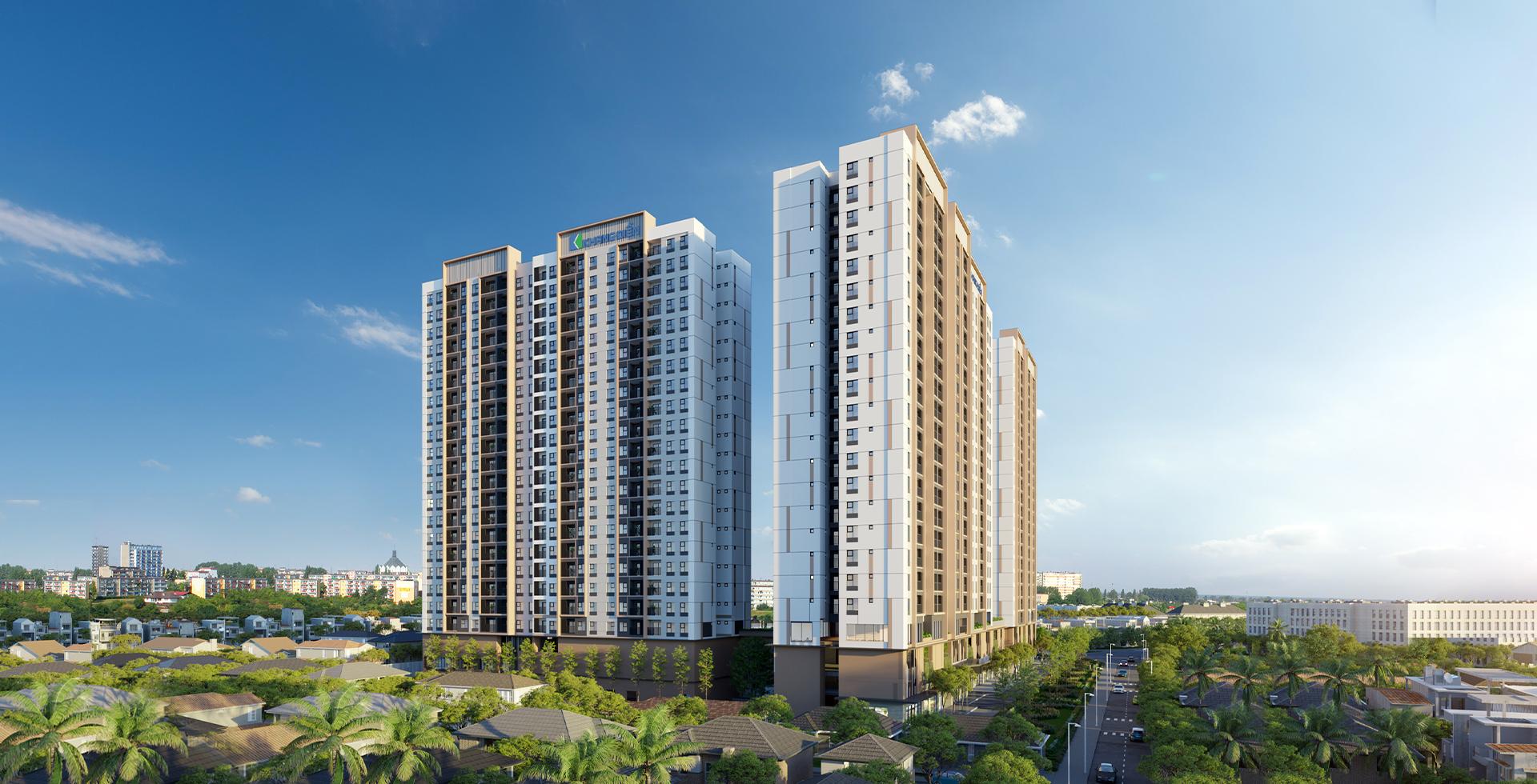 Quy mô: 4.600m2 với 2 block căn hộ cao 25 tầng – Tổng cộng 320 căn hộ