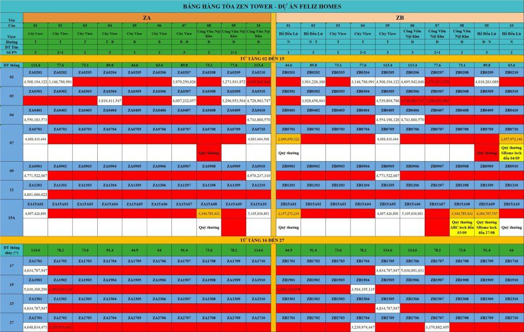 BẢNG GIÁ FELIZ HOMES – TÒA ZEN CẬP NHẬT MỚI NHẤT TỪ CHỦ ĐẦU TƯ