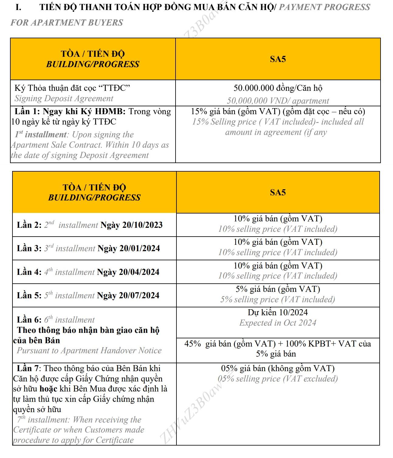 (Thanh toán theo tiến độ bàn giao)