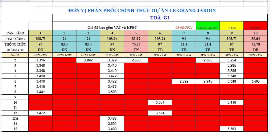 Bảng giá tòa G1 Le Grand Jardin